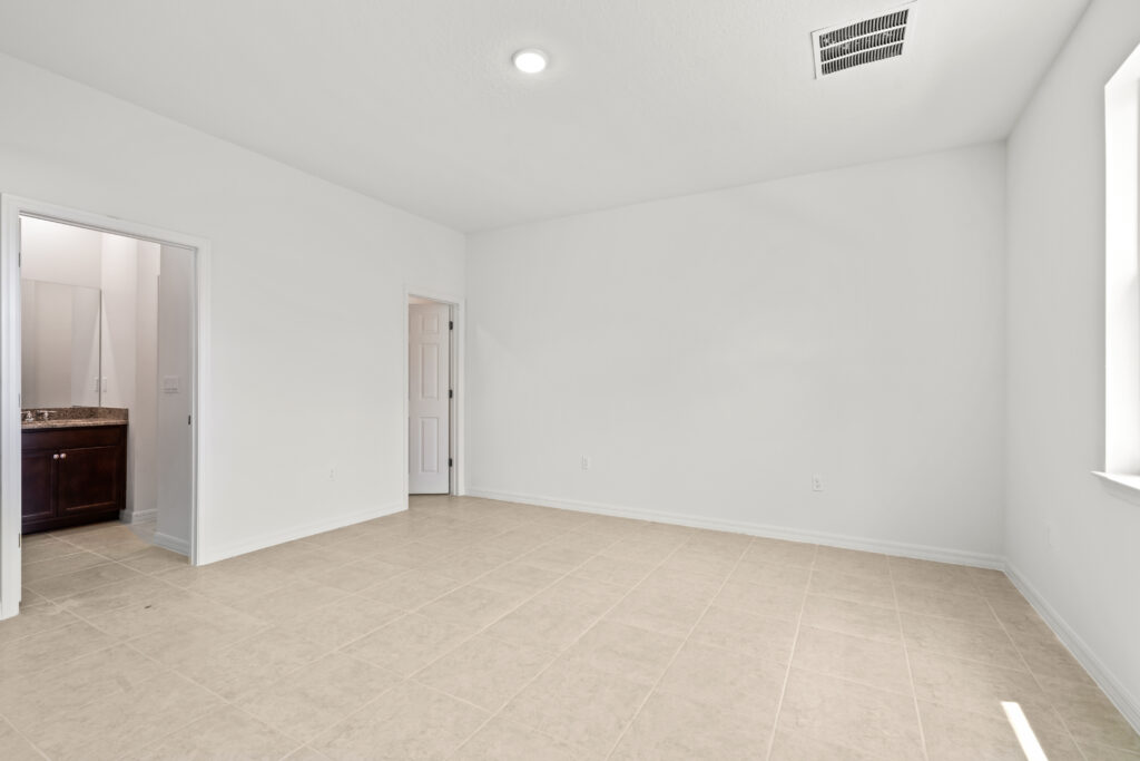 • The master bedroom in the Clearwater floorplan from the Cornerstone collection by Holiday Builders.